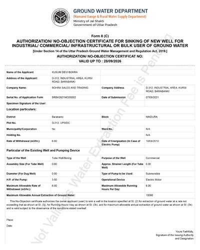GROUND WATER NOC FOR BOHRA SALES AND TRDING